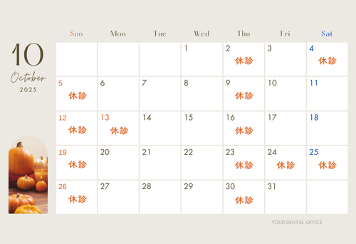 2025年10月の休診日のお知らせ2025.09.272025年10月の休診日のお知らせです。10月4日(土) 休診 10月24日(金) 休診 10月25日(土) 休診その他、毎週日曜日・木曜日と祝日が休診日です。 2025年9月の休診日のお知らせ前の記事